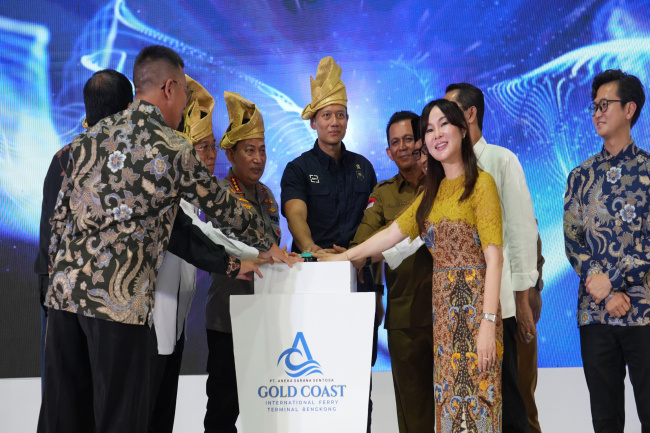 Batam, [GT] – Kepala BP Batam Amsakar Achmad dan Wakil Kepala BP Batam Li Claudia Chandra mengapresiasi Peresmian Gold Coast International Ferry Terminal di Bengkong, pada Senin siang (14/4/2025), di wilayah Golden Prawn.