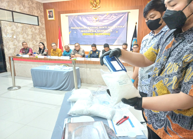 Pemusnahan dilakukan setelah barang bukti tersebut memiliki kekuatan hukum dan telah disisihkan sebagian kecil untuk uji laboratorium serta kepentingan pembuktian di persidangan.