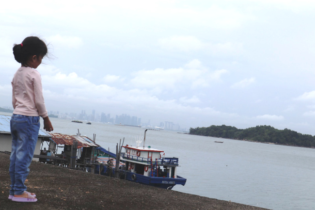 Dari pesisir Belakangpadang, pemandangan Singapura tampak seperti lukisan hidup. Gedung-gedung pencakar langit berdiri megah di cakrawala, kontras dengan suasana tenang dan sederhana di pulau ini.