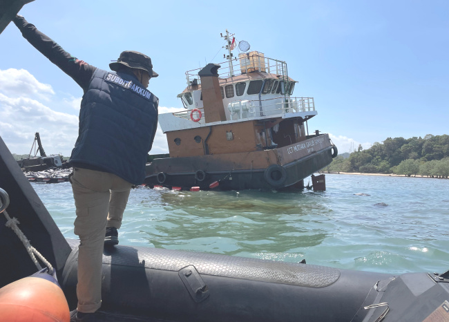 “Kapalnya kandas di perairan Patam Lestari, Sekupang. Limbah hitamnya berceceran sampai ke Pantai Tangga Seribu dan Dangas,” ujar seorang warga sekitar.
