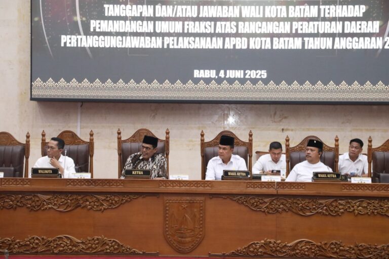 Batam, [GT] – DPRD Kota Batam menggelar rapat paripurna dengan agenda mendengarkan jawaban Wali Kota Batam Amsakar Achmad terhadap pandangan fraksi-fraksi partai politik terkait Ranperda Pertanggungjawaban Pelaksanaan (RPP) APBD Tahun Anggaran 2024, Rabu (4/6/2024) siang.
