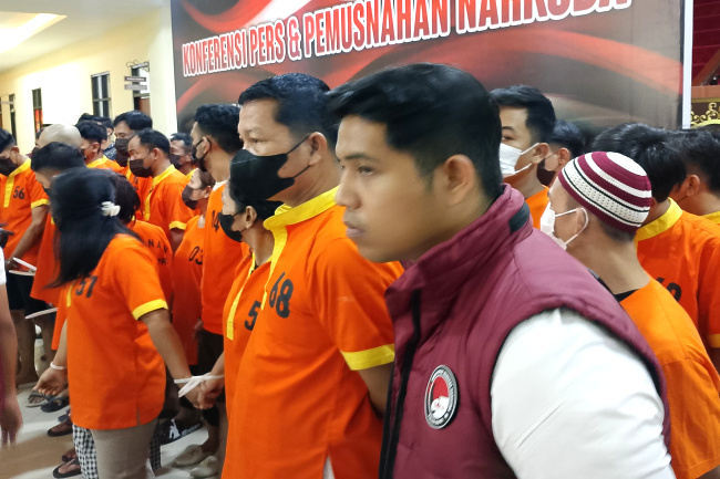 Dalam operasi itu, polisi menangkap enam orang tersangka, termasuk dua warga negara asing asal Singapura. Keenam tersangka yaitu M.S.I, A.D.P, Z.D (WN Singapura), M.F (WN Singapura), JS dan EMS