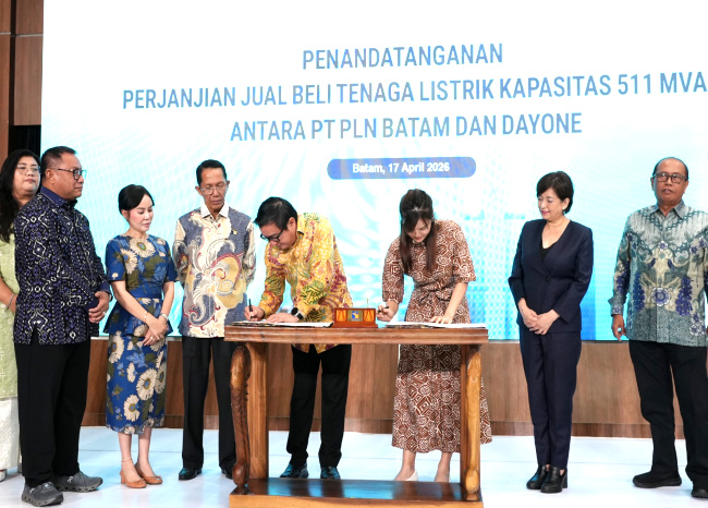 Batam, [GT] – PT PLN Batam bersama DayOne melaksanakan penandatanganan Perjanjian Jual Beli Tenaga Listrik (PJBTL) Terbesar di Indonesia dengan total kapasitas mencapai 511 MVA di Auditorium Balairung Sari, Badan Pengusahaan (BP) Batam (17/4/2026).