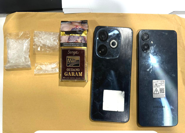 “Di dalamnya berisi tiga paket kristal bening yang diduga narkotika jenis sabu dengan berat bruto 16,03 gram,” terangnya.