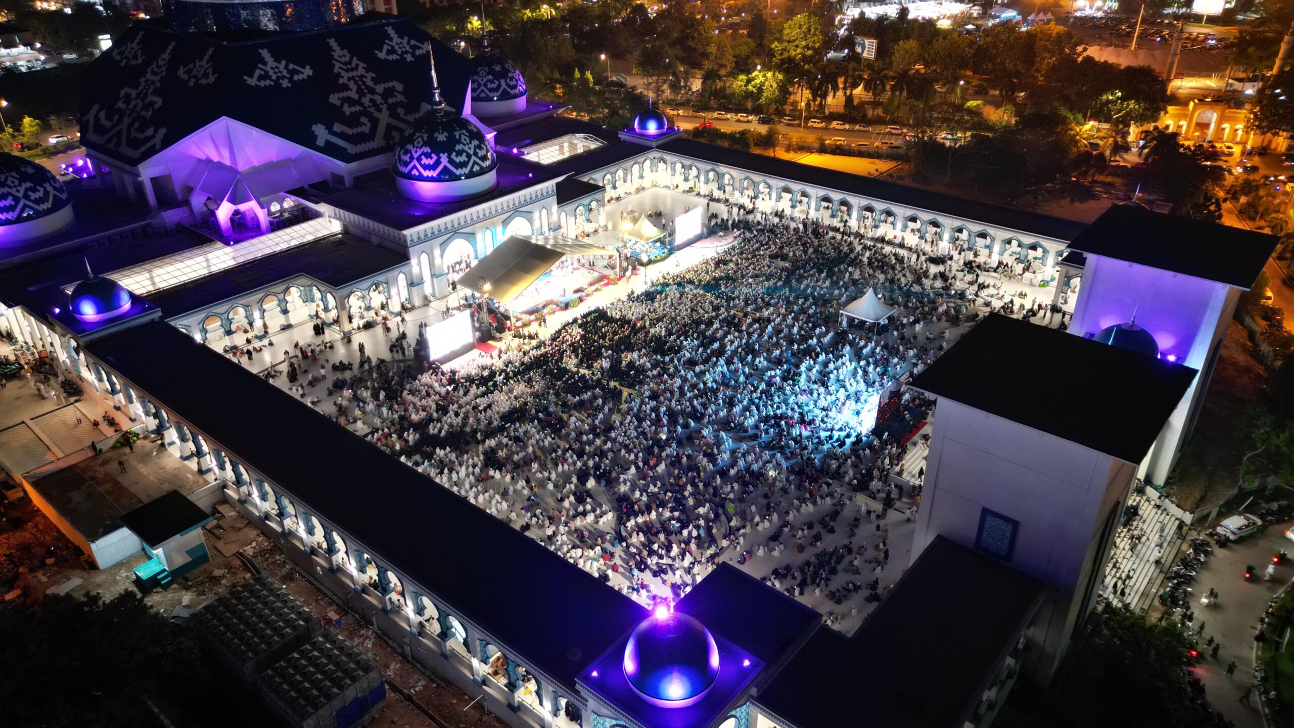 Ribuan jemaah hadir memadati area masjid sejak sore hari dan dengan antusias mengikuti jalannya seremoni kegiatan.