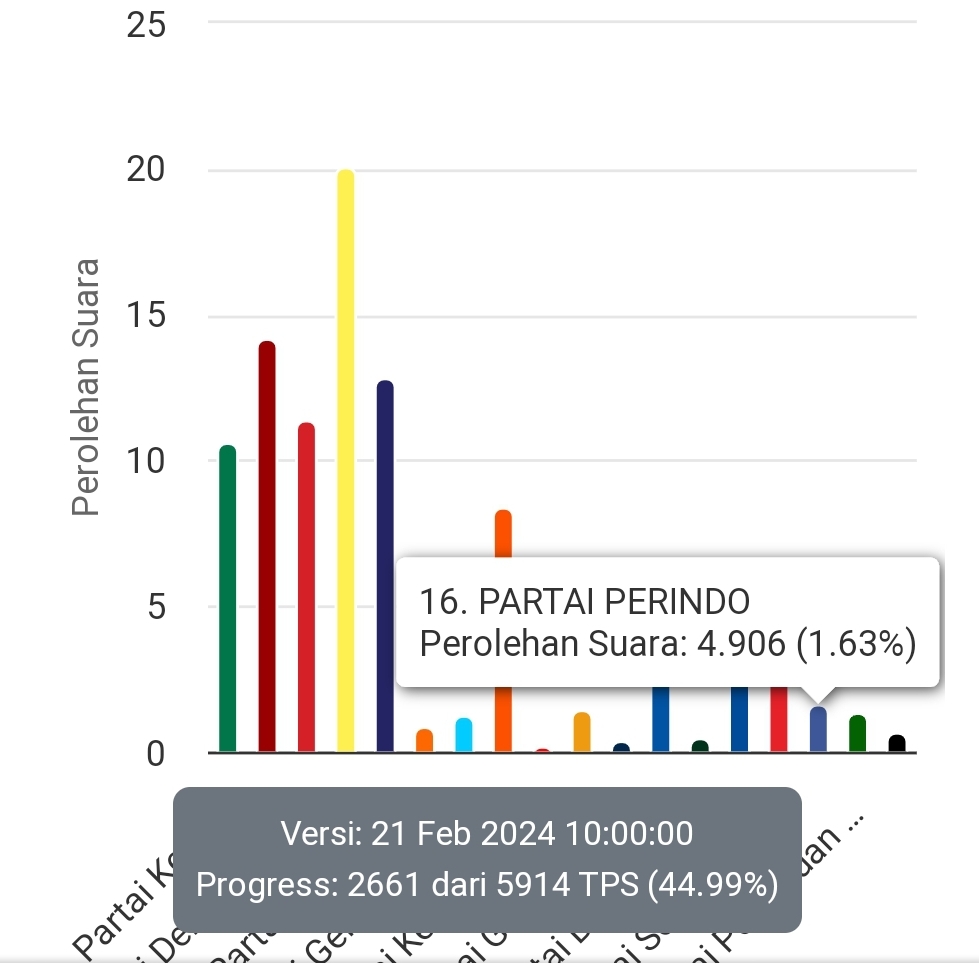 Dilansir dari situs kpu.go.id, hasil rekapitulasi real count, Rabu (20/2/24) pukul 11.00 Wib, terlihat sejumlah nama petinggi partai level daerah mentereng di posisi atas klasmen perolehan suara. Ada nama sejumlah petahanan yang suaranya disalip oleh pendatang baru.