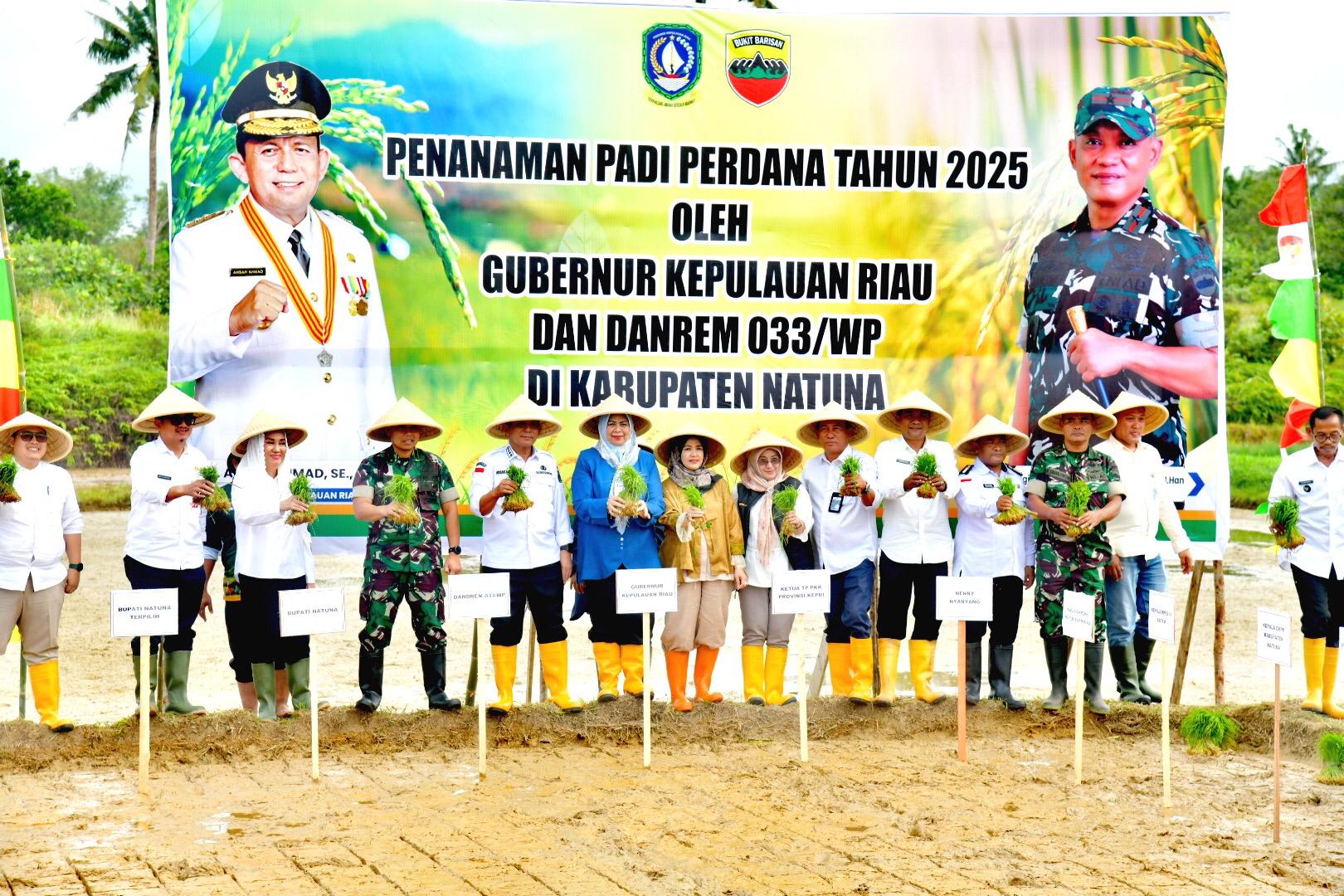 Batam, [GT] – Pemerintah Provinsi Kepulauan Riau terus menunjukkan komitmennya dalam memperkuat ketahanan pangan daerah. Hal ini ditandai dengan pelaksanaan kegiatan Tanam Perdana Padi di Lahan Kelompok Tani Ciptodadi, Kecamatan Bunguran Batubi, Kabupaten Natuna, pada Rabu (12/2/25).