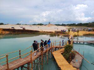 “Meski masih kurang fasilitas penunjang, tapi boleh lah sebagai tujuan wisata domestik. Selain sebagai replika gurun pasir yang ada dibelahan dunia sana, tapi juga sebagai edukasi pertambangan yang dapat merusak lingkungan,” ujarnya, Minggu (2/6/24).